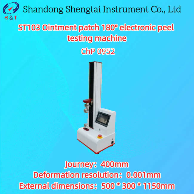 The ST103 ointment paste 180° electronic peeling test machine is designed strictly in accordance with the requirements of the new version of the "2025 Chinese Pharmacopoeia 0952 Adhesion Determination Method, Third Method Peel Strength Determination". It adopts modern mechanical design concepts and ergonomic design principles, and uses advanced microcomputer processing technology for careful and reasonable design and manufacturing. It is a new generation of testing machine with novel design, convenient use, excellent performance, and beautiful appearance
