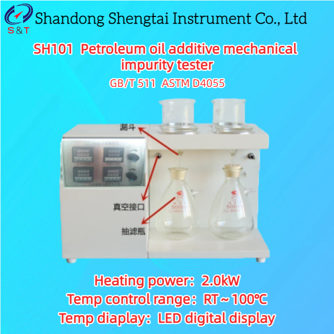 SH101 mechanical impurity tester is designed according to the requirements of the national standard GB/T 511 "Petroleum products and additives mechanical impurity determination method (weight method)". It is suitable for the determination of all kinds of light and heavy oil, lubricating oil and additives mechanical impurity content in petroleum products.