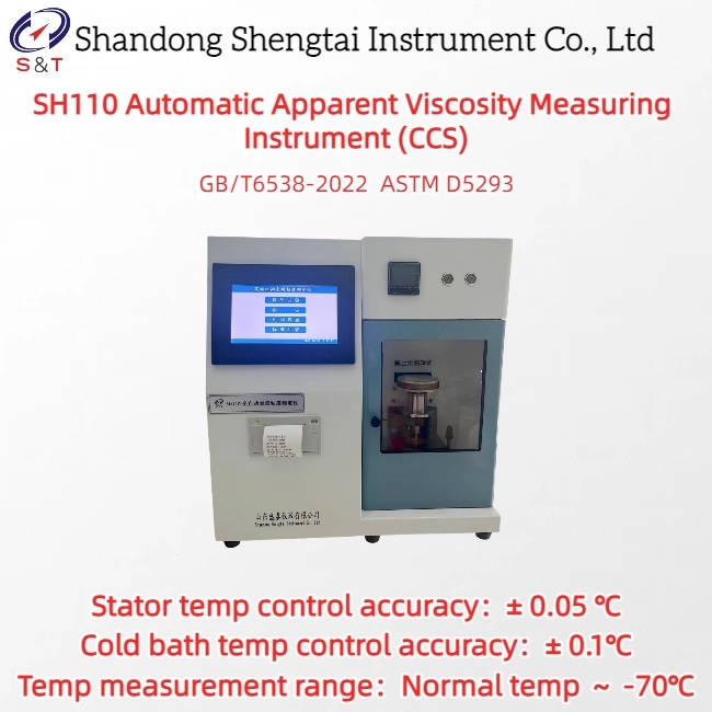 SH110 automatic apparent viscosity meter (CCS) conforms to GB/T6538-2022, ASTM D5293 and other technical specifications;Suitable for testing the low temperature dynamic viscosity index of engine oil.The instrument can measure the apparent viscosity of oil at temperatures ranging from -35℃ to -5℃ with an interval of 5℃.It has the advantages of accurate measurement, good repeatability, stable performance and simple operation.