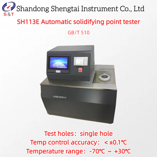 The SH113E fully automatic solidifying point tester is based on the national standard GB/T510 "Method for Determining the Solidification Point of Petroleum Products". It adopts modern advanced technology and integrates mechanical, optical, electronic, and computer technology. It can automatically complete the testing of the freezing point of petroleum products. This instrument adopts photoelectric detection technology, glass tube automatic tilting method, and imported compressor refrigeration system to ensure the required cooling depth is achieved.