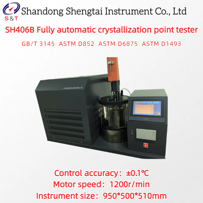 The SH406B fully automatic crystallization point tester is applicable to GB/T 3145-2023 benzene crystallization point determination, GB/T 3069.2-2005 naphthalene crystallization point determination, GB/T 3710-2009 industrial phenol and phenol crystallization point determination, GB/T 7533-1993 organic chemical product crystallization point determination, and GB/T 618-2006 chemical reagent crystallization point determination. GB/T1663-2001 Determination of Crystallization Point of Plasticizers GB/T13255.2 Determination of Crystallization Point of Caprolactam for Industrial Use. Complies with American standard ASTM D852/D6875/D1493
