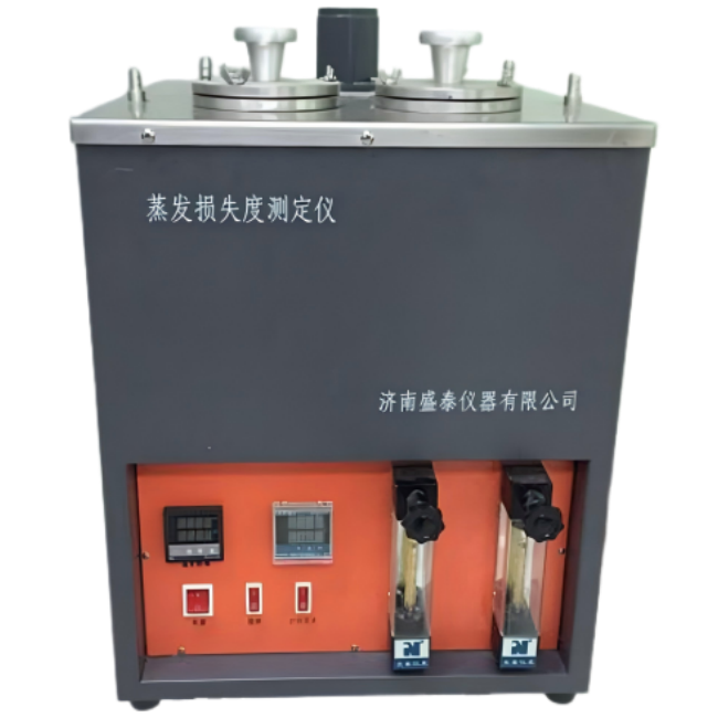 An air pump and a flowmeter are used to inject air into the sample in the evaporation test device in the constant temperature bath at a quantitative flow rate. After a specified time, the evaporation loss of the sample is measured.