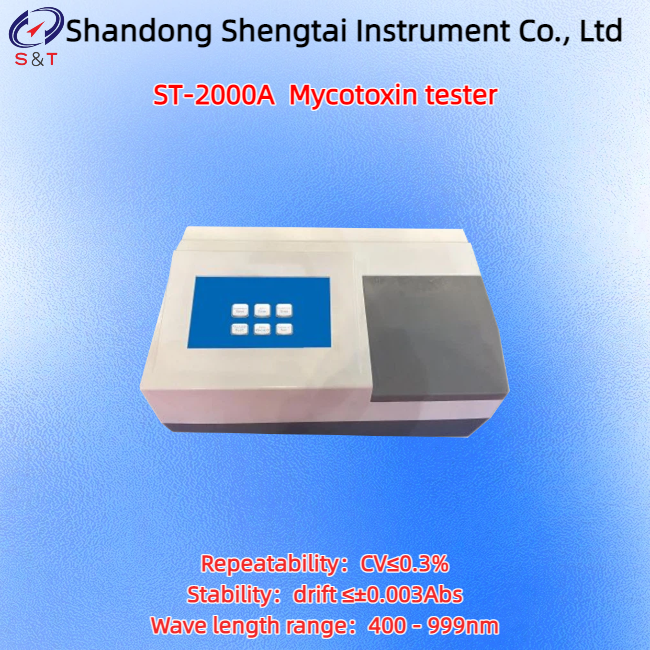 ST-2000A mycotoxin analyzer is a necessary analytical instrument for aflatoxin and enzyme-linked immunosorbent assay. The principle of solid-phase enzyme-linked immunosorbent assay (ELISA), namely enzyme-linked immunosorbent assay (ELISA), is composed of this instrument and B1 kit, which can be used to determine the content of aflatoxin B1 and other mycotoxins in samples in a limited and quantitative manner (if equipped with other kits, other toxins can be detected). It is widely used in the detection of aflatoxin B1 and other mycotoxins in food, feed, oil, dairy products, drugs, beverages, wine and other products.